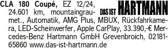 Anzeigentitel: CLA 180 Coup , EZ 12/24, 24.60