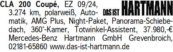Anzeigentitel: CLA 200 Coup , EZ 09/24, 3.274