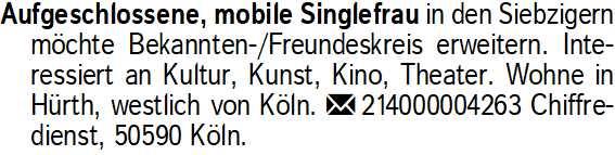Anzeigentitel: Aufgeschlossene, mobile Single