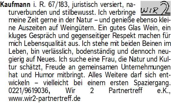 Erscheinungsdatum: Anzeige vom 7.2.2026 in der Rubrik "Er sucht Sie"