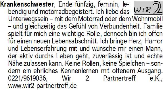 Anzeigentitel: Krankenschwester, Ende fünfzig