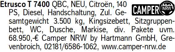 Anzeige vom 14.2.2026 in der Rubrik "Wohnwagen/Wohnmobile"