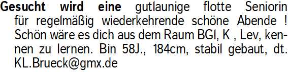 Anzeigentitel: Gesucht wird eine gutlaunige f