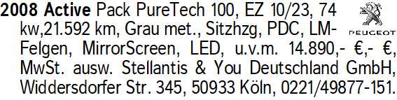 Erscheinungsdatum: Anzeige vom 14.2.2026 in der Rubrik "Peugeot"