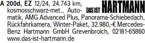 Anzeigentitel: A 200d, EZ 12/24, 24.743 km, k