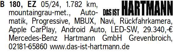 Anzeigentitel: B 180, EZ 05/24, 1.782 km, mou
