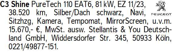 Anzeige vom 21.2.2026 in der Rubrik "Citroen"