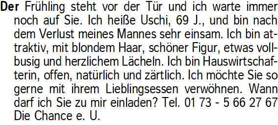 Anzeige vom 28.2.2026 in der Rubrik "Sie sucht Ihn"