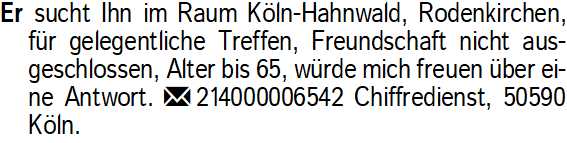 Anzeigentitel: Er sucht Ihn im Raum Köln-Hahn