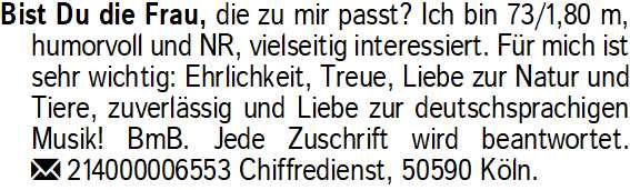 Anzeigentitel: Bist Du die Frau, die zu mir p