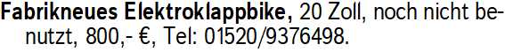 Anzeigentitel: Fabrikneues Elektroklappbike,