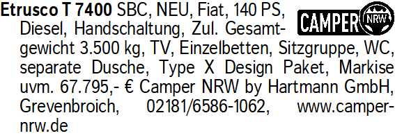 Erscheinungsdatum: Anzeige vom 28.2.2026 in der Rubrik "Wohnwagen/Wohnmobile"