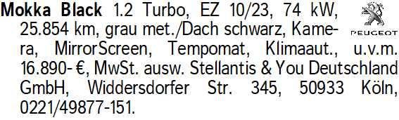 Anzeige vom 28.2.2026 in der Rubrik "Opel"