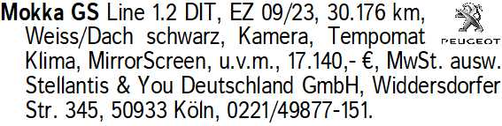 Anzeige vom 28.2.2026 in der Rubrik "Opel"