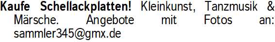 Anzeigentitel: Kaufe Schellackplatten! Kleink