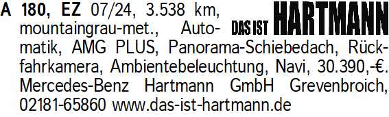 Anzeigentitel: A 180, EZ 07/24, 3.538 km, mou