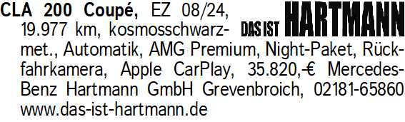 Anzeigentitel: CLA 200 Coup , EZ 08/24, 19.97