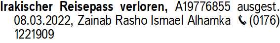 Anzeigentitel: Irakischer Reisepass verloren,