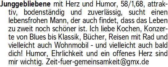 Anzeigentitel: Junggebliebene mit Herz und Hu