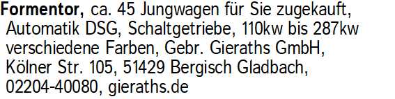 Anzeigentitel: Formentor, ca. 45 Jungwagen fü