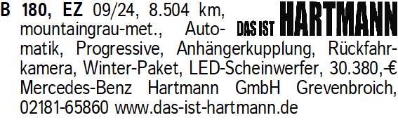 Anzeigentitel: B 180, EZ 09/24, 8.504 km, mou