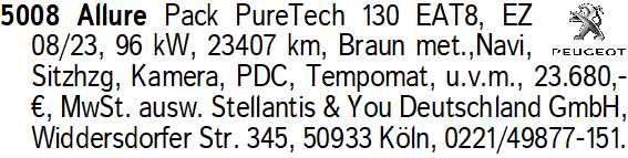 Anzeige vom 7.3.2026 in der Rubrik "Peugeot"