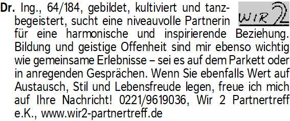 Anzeige vom 7.3.2026 in der Rubrik "Er sucht Sie"