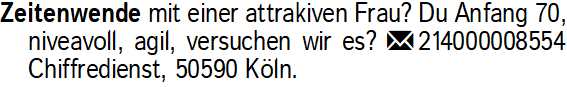 Anzeige vom 14.3.2026 in der Rubrik "Sie sucht Ihn"