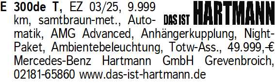 Anzeigentitel: E 300de T, EZ 03/25, 9.999 km,