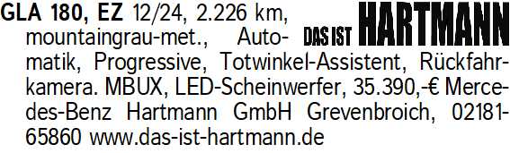 Anzeigentitel: GLA 180, EZ 12/24, 2.226 km, m