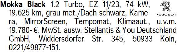 Anzeigentitel: Mokka Black 1.2 Turbo, EZ 11/2