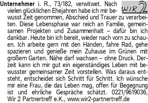 Erscheinungsdatum: Anzeige vom 14.3.2026 in der Rubrik "Er sucht Sie"