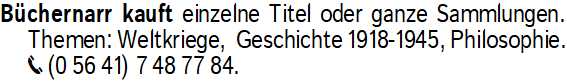 Anzeigentitel: Büchernarr kauft einzelne Tite