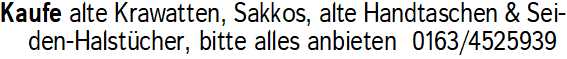 Anzeigentitel: Kaufe alte Krawatten, Sakkos,