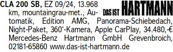 Anzeigentitel: CLA 200 SB, EZ 09/24, 13.968 k