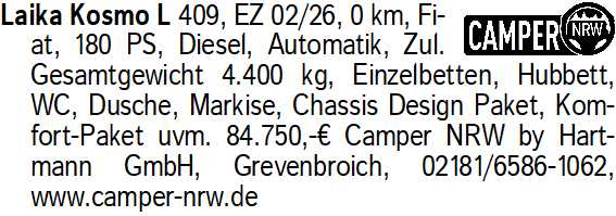 Anzeigentitel: Laika Kosmo L 409, EZ 02/26, 0