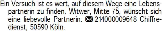 Anzeige vom 21.3.2026 in der Rubrik "Er sucht Sie"