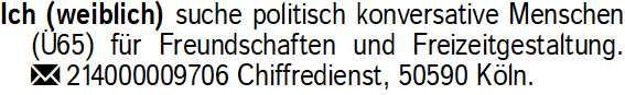 Anzeigentitel: Ich (weiblich) suche politisch