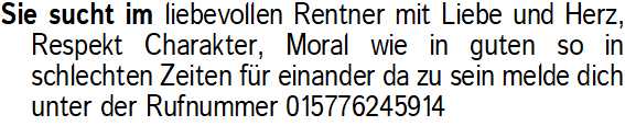 Anzeigentitel: Sie sucht im liebevollen Rentn