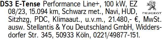 Anzeigentitel: DS3 E-Tense Performance Line+,