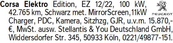 Anzeigentitel: Corsa Elektro Edition, EZ 12/2
