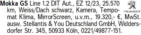 Anzeigentitel: Mokka GS Line 1.2 DIT Aut., EZ