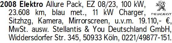 Erscheinungsdatum: Anzeige vom 21.3.2026 in der Rubrik "Peugeot"