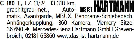 Anzeigentitel: C 180 T, EZ 11/24, 13.318 km,