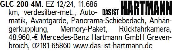 Anzeigentitel: GLC 200 4M. EZ 12/24, 11.686 k