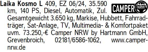 Anzeige vom 21.3.2026 in der Rubrik "Wohnwagen/Wohnmobile"