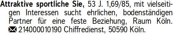 Anzeige vom 28.3.2026 in der Rubrik "Sie sucht Ihn"