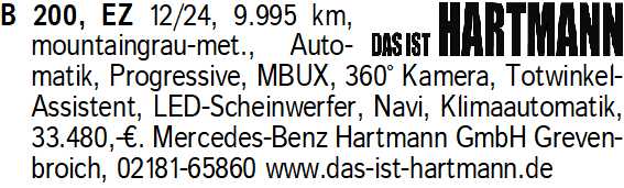 Anzeigentitel: B 200, EZ 12/24, 9.995 km, mou