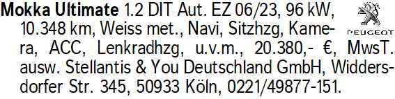 Anzeige vom 28.3.2026 in der Rubrik "Opel"
