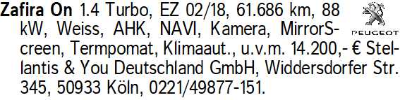 Anzeige vom 28.3.2026 in der Rubrik "Opel"